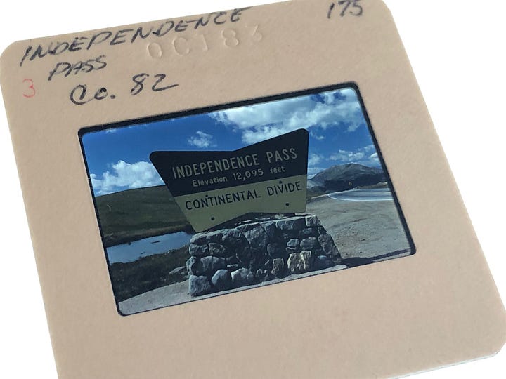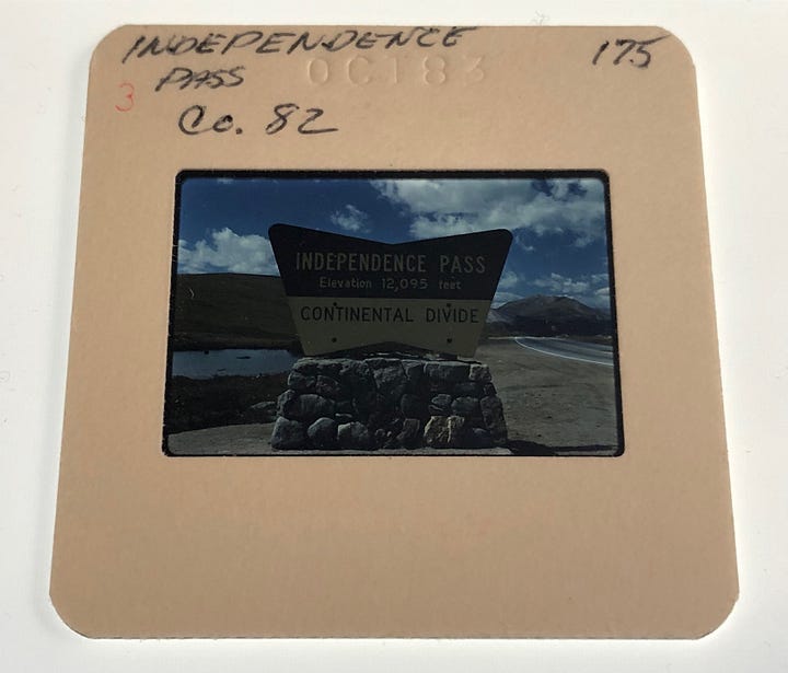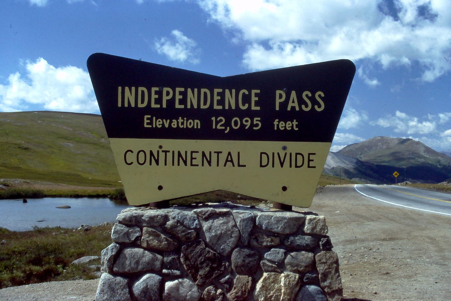 This week, a 1983 slide showing the Continental Divide sign on Independence Pass was cataloged into the archives.