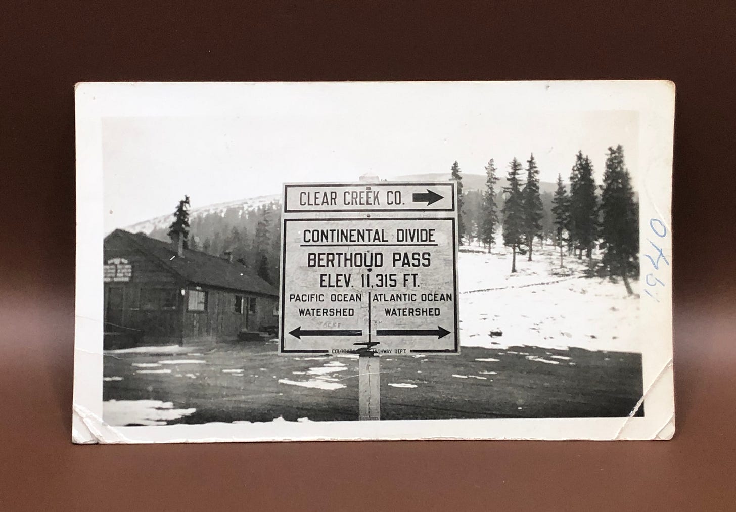 A 1940 photograph of the Berthoud Pass Continental Divide sign was added to the archives this week. Having a dated photo that includes lots of graffiti will help to date other photos from this time period. The collection already included several photographs from the early 1940s, but this is the only one with a confirmed date.