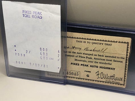 The 1981 receipt might be the most mundane thing in the archives, but at least we know how much it cost to drive up the Pikes Peak Highway during the 1980s now.